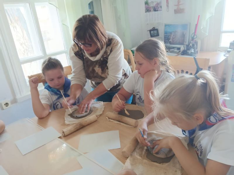Практическая часть музейного занятия проходила в учебном классе Детского музейного центра. На мастер-классе «Чудо-рыбка» дети с увлечением лепили своими руками сувенир из глины.