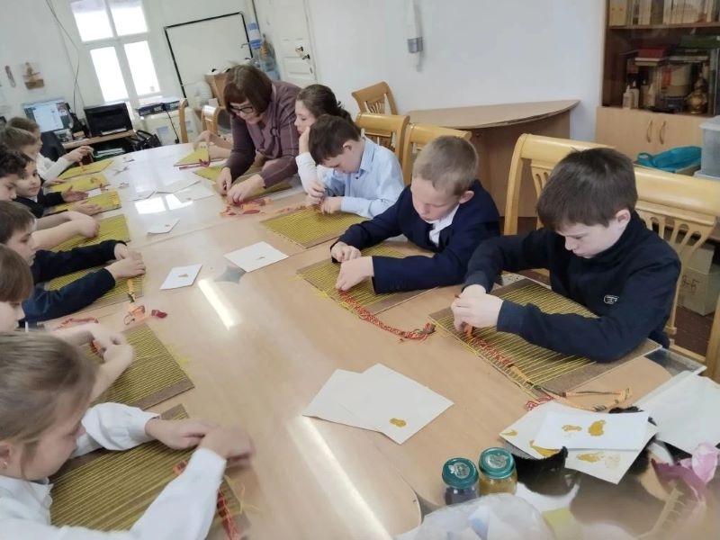 На практическом занятии школьники побывали в роли ткачей, попробовали этот вид ремесла.