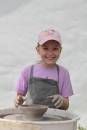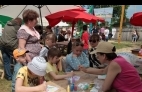Юные мастера с удовольствием создавали всего за несколько минут необычайные сувениры. На память о празднике у детей остались яркие цветы из гофрированной бумаги, сказочные рыбки из глины, куклы, украшения-обереги. Детвора спешила раскрасить мельницу, нарисовать лазоревый цвет на прозрачной плёнке, сплести коврик из трав или дать волю своей фантазии, выводя на песке замысловатые рисунки. Глаза разбегались от такого обилия забав.