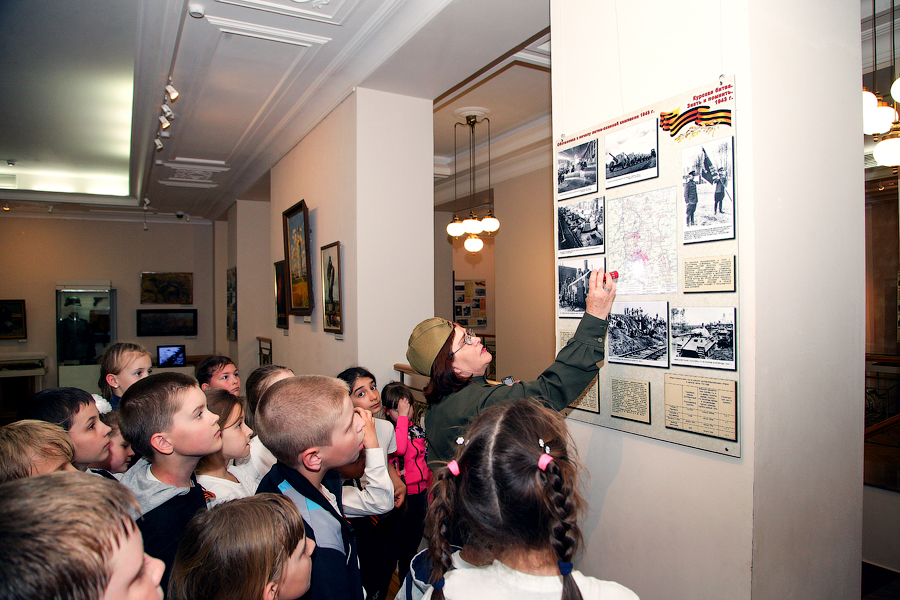 Яркое впечатление у девчонок и мальчишек оставило посещение выставки, посвящённой 75-летию Курской битвы и освобождению города Белгорода. Ребята узнали о легендарной странице Великой Отечественной войны – танковом сражении под станцией Прохоровка, которое разыгралось в июне 1943 года. Оно стало решающим поворотом в ходе войны и крупной вехой на пути к нашей окончательной победе. На выставке дети познакомились с образцами стрелкового и холодного оружия, снаряжением и обмундированием противоборствующих сторон, увидели боевые награды бойцов Красной Армии, знамёна соединений, принимавших участие в Курской битве и освобождавших город. Их вниманию был предложен исторический документальный фильм «Курская битва».