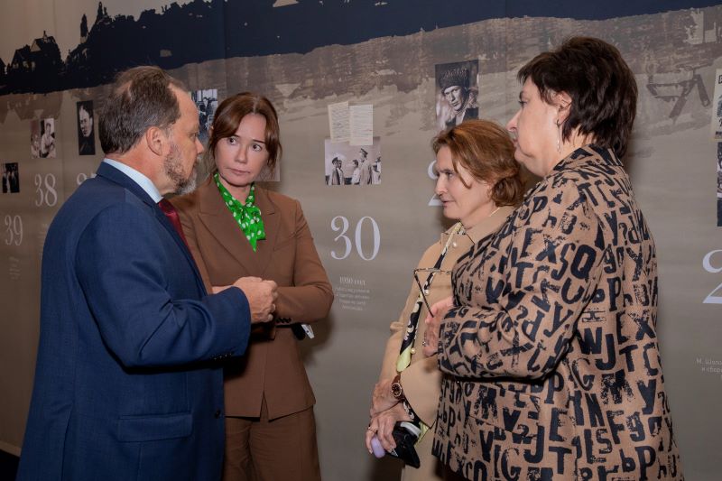 Елена Михайловна осмотрела экспозицию, посвящённую 100-летию начала работы М.А. Шолохова над романом-эпопеей и 120-летию писателя, вместе с первым заместителем председателя Комитета по культуре ГД РФ, президентом Государственного музея-заповедника М.А. Шолохова «Тихий Дон», внуком писателя Александром Михайловичем Шолоховым.
