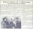 Неоднократно принимал М.А. Шолохов военнослужащих Советской Армии и у себя в Вёшенской, долго и обстоятельно беседовал о жизни, армейской службе. Писателю было интересно и важно знать, чем живут воины, как осваивают науку побеждать в современных условиях. В Шолохове воины видели наставника, слово которого воодушевляет, укрепляет дух, а он в них – доблестных защитников Отечества, мужественных и отважных, готовых отдать жизни за Родину.
