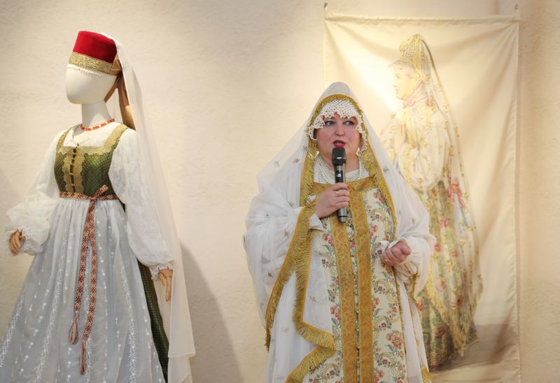 С приветственным словом выступила заведующая экспозиционным отделом Всероссийского историко-этнографического музея Оксана Викторовна Жигалова: «Мне очень радостно находиться именно в этом месте. Позвольте выразить вам огромную благодарность за то, что вы предоставили нам возможность представить уникальный выставочно?этнографический проект «Красота по-русски. Новоторжские щеголихи».