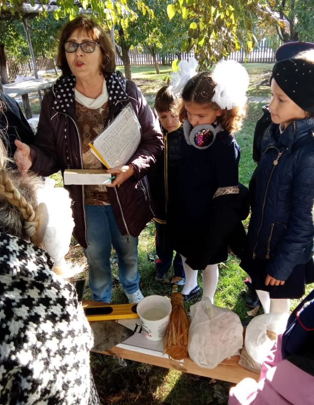 Ребята узнали, что хороший мастер-печник был уважаемым человеком, так как обладал особыми знаниями и навыками. Неправильно сложенная печь дымила, не удерживала тепла, пища пригорала. Дети увидели строительные инструменты, которые использовал мастер для кладки печи, а также природные материалы – глину, песок, – которые шли на раствор. Для приготовления замеса соблюдали строгие пропорции: если их нарушить, печь будет растрескиваться или даже рассыпаться. Школьники также узнали, что для розжига печи служили такие подручные материалы, как сухая трава, кора дерева, щепки, солома, бурьян, камыш; основным же топливом были дрова и кизяки. Затем участники занятия познакомились с кухонными принадлежностями, которыми пользовались казачки для приготовления пищи на печи (кочерга, ухват или рогач) и учились ставить чугунок на печь, используя ухват.