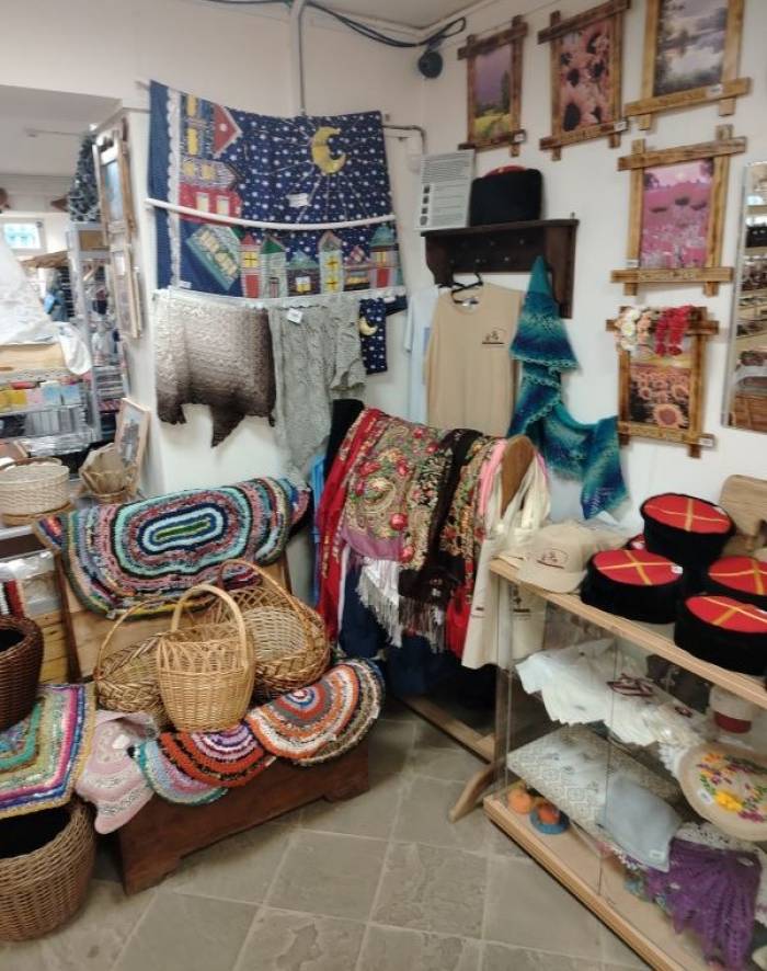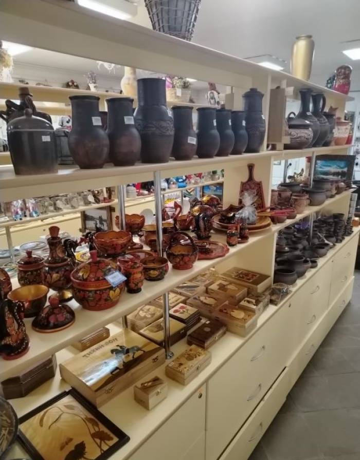 Гордостью сувенирной лавки являются этнические сувениры: это и донские нагайки, сувенирные шашки, папахи, кубанки, шлычки, шалевые платки, коврики–дерюжки, лафитники. Большой выбор женских украшений (Ростовская финифть), изделия из янтарной смолы, Семикаракорская керамика, донские травяные сборы, натуральный майский, цветочный мёд, тульские самовары и многое другое.