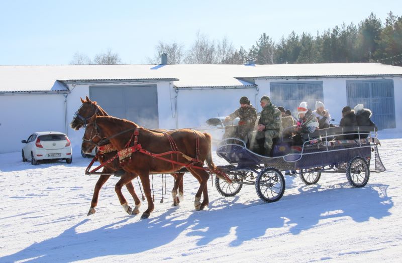 Одно из главных украшений праздника – кони музея-заповедника. На входе гостей встречала пара ярких лошадей, которые катали всех желающих в экипаже. Даже после окончания праздника здесь стояла длинная очередь из малых и взрослых, желающих прокатиться по заснеженному лесу. А с каким удовольствием посетители кормили лошадей морковью!