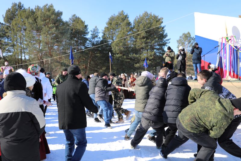 Во время народных гуляний казаки демонстрировали удаль, силу, ловкость. Нашлись богатыри, которые пробовали поднять 16-, 32-, 50-килограммовые гири. Несколько ловкачей штурмовали масленичный столб в попытке добыть вкусный приз, но подчинить его себе смогли только двое самых сноровистых казаков. Не менее важны и командные соревнования – распиловка дров, перетягивание каната, весёлая эстафета. А затем все вместе закружились в праздничный хоровод, пели любимые казачьи и современные патриотические песни.