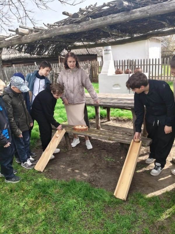 На память о занятии девчонки и мальчишки под руководством музейного сотрудника расписали красками заготовку яйца из гипса. А пока «писанки» высыхали, ребята вышли на улицу и поиграли в старинную игру – катание яиц – любимое развлечение у донских казаков в Светлую седмицу.