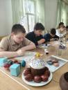 Ребята узнали, что в пасхальных традициях важное место занимала еда, в которую входили пасха (кулич) и крашенные яйца. Пасха – высокий пасхальный хлеб цилиндрической формы, который готовится из сдобного теста. Тесто для пасхи затевали на хмелинах – это шишки растения, которое называется хмель (дрожжей в старину не было). Зажиточные казаки пекли их с изюмом. В семьях простых казаков пасхи смазывали взбитым яичным белком без сахара и посыпали крашеным пшеном. Самую высокую пасху несли для освящения в храм. Школьники познакомились с технологией окрашивания яиц в красный цвет при помощи луковой шелухи. Такие яйца назывались «крашенки». Иногда яйца расписывали с помощью сахара, горячего воска и красок, получались «писанки».