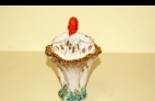Карандашница произведена на Ломоносовском фарфоровом заводе (ЛФЗ) в 1950-х годах. Техника: роспись надглазурная, золочение. Размеры: 16,0х10,0х9,0 см. Авторы: скульптор С.Б. Велихова, художник К.Г. Косенкова.