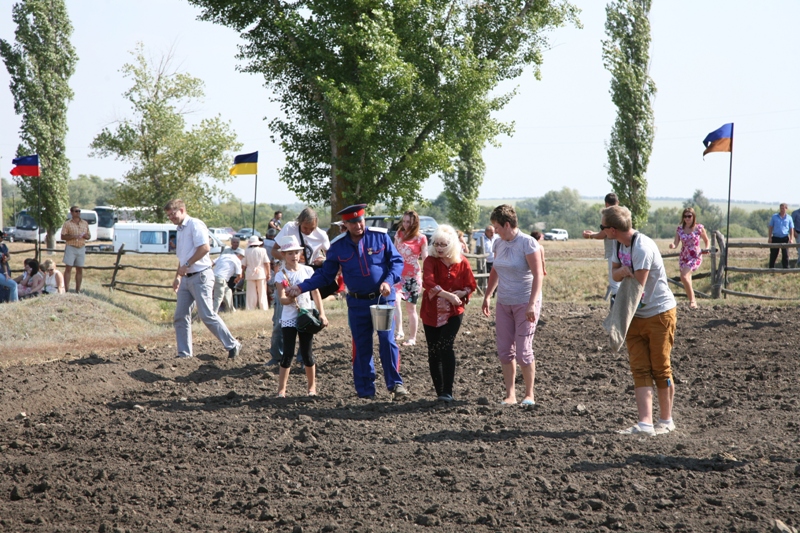 Директор музея-заповедника А. Шолохов, поприветствовав со сцены собравшихся, призвал их к живому соучастию в реконструкции вот-вот начинающихся старинных полевых работ. Само представление (сценарий С. Грибанова, постановка Т. Галицыной), включало в себя сборы семьи на полевые работы, сев вручную, покос хлеба косой, серпом и конной косилкой, сгребание скошенного ручными и конными граблями, обмолот хлеба с помощью молотильного камня. Были продемонстрированы пахота на быках, боронование конной тягой, другие старинные приёмы и способы труда на земле. Зрители во всех этих работах были активными помощниками, что вызывало поддержку собравшихся, забавные комментарии, подсказки.