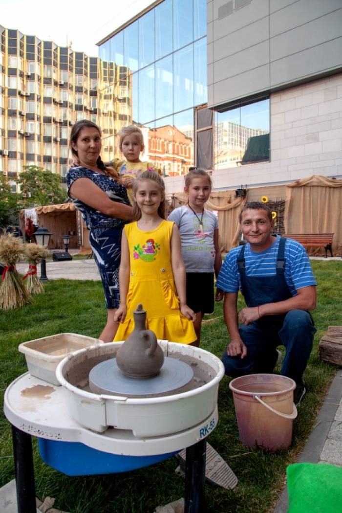 В гостеприимном «Казачьем городке» сотрудники музея и волонтеры встречали гостей в казачьих костюмах, звучали песни донских казаков, работали мастер-классы донских ремесел. С большим интересом гости из разных стран плели веревки на просаке, мололи зерно ручной мельницей, на гончарном круге делали горшочки из глины, плели плетень. И взрослые, и дети с удовольствием мастерили тряпичных птичек, расписывали деревянные фигурки, выжигали по дереву, украшали сухоцветами закладки для книг и календарики.