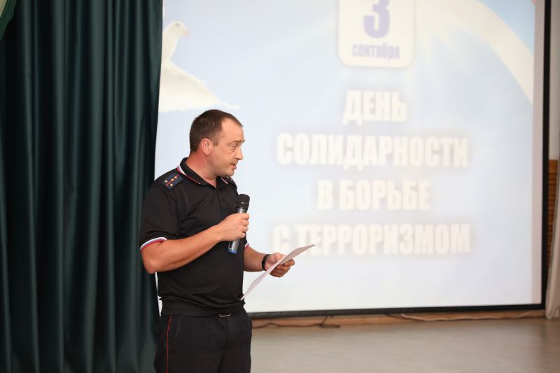 Ключевой частью мероприятия стало выступление старшего инспектора направления мобилизации, капитана полиции Андрея Анатольевича Сегеды. Он рассказал учащимся о сущности терроризма и экстремизма, их опасности для общества и каждого человека в отдельности, а также о самых крупных терактах и их последствиях.