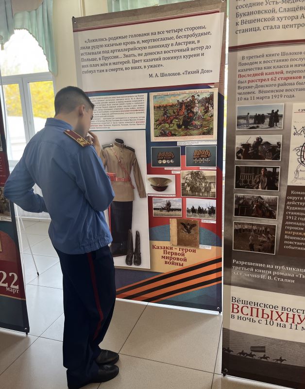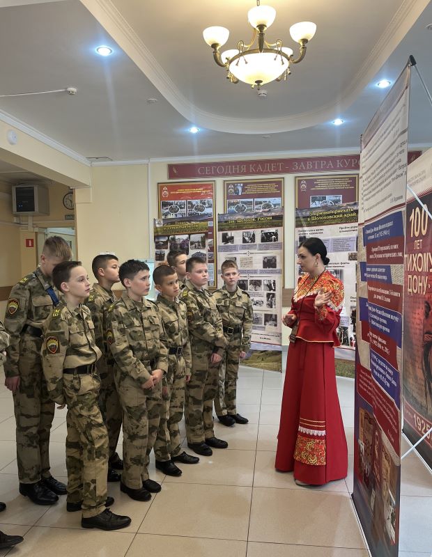 Экспозиция, посвященная вековому юбилею великого романа, вызвала живой интерес у юных кадет, искренне гордящихся тем, что их учебное заведение носит имя выдающегося писателя. Сотрудники музея подробно рассказали об истории создания романа «Тихий Дон», его главных героях, а также о тех исторических событиях, которые нашли отражение в произведении.