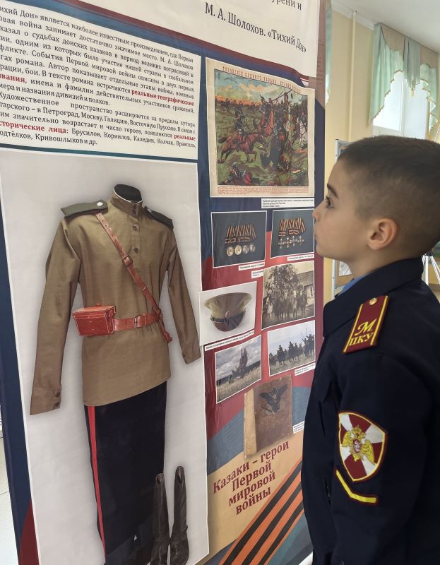Выставка включала в себя фотографии, документы, а также предметы быта донских казаков начала XX века. Особое внимание было уделено иллюстрациям к роману, выполненным известными художниками. Кадеты с интересом рассматривали выставку, задавали вопросы и делились своими впечатлениями от увиденного.
