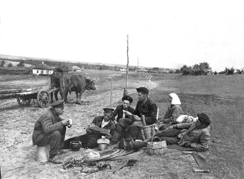 «Он [Пантелей Прокофьевич] и отступать готовился как настоящий хозяин: все, что могло понадобиться в поездке, было предусмотрительно приготовлено им. Топор, ручная пила, долото, сапожный инструмент, нитки, запасные подметки, гвозди, молоток, связка ремней, бечева, кусок смолы — все это, вплоть до подков и ухналей, было завернуто в брезент и в одну минуту могло быть уложено в сани. Даже безмен Пантелей Прокофьевич брал с собой…» (ч. 7, гл. XXV).